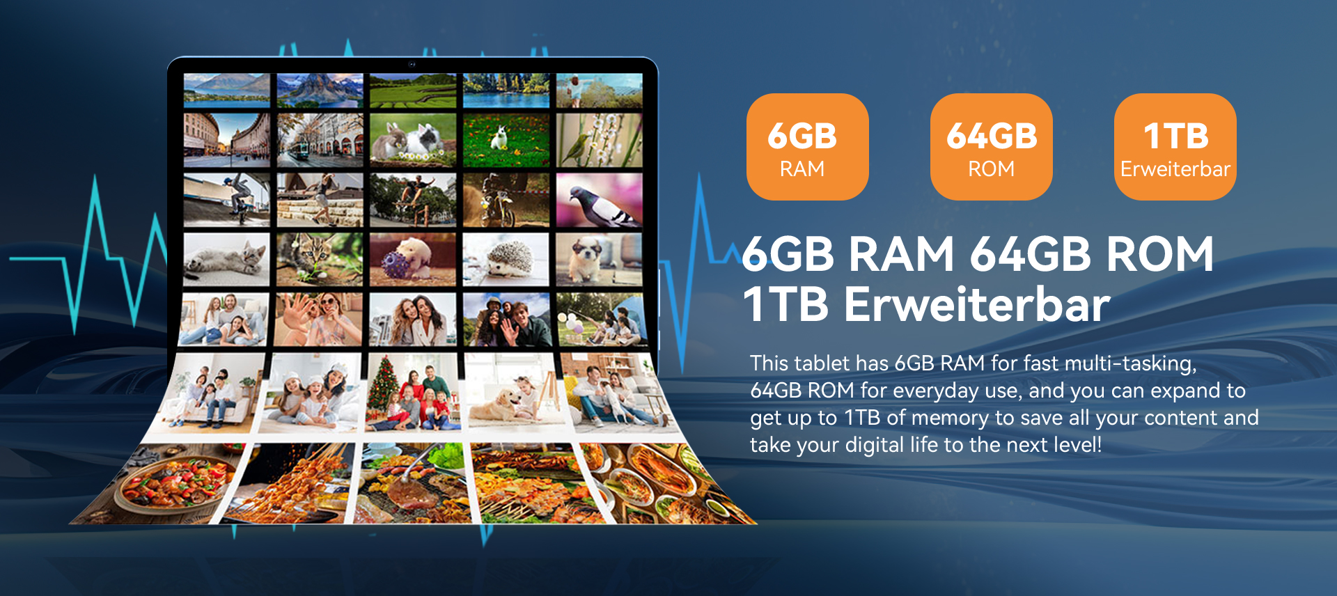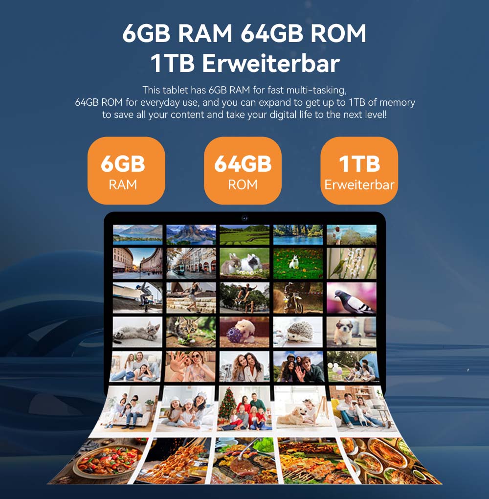 Surfplattan med 64 GB internminne kan utökas upp till 1 TB via micro-SD-kort (kort ingår ej). Tillräckligt utrymme för filmer, spel, videor, musik, e-postmeddelanden, foton och viktiga filer.
