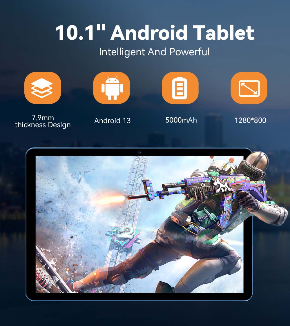 10,1-tums surfplattan har en kraftfull 2,0 GHz octa-core CPU, 6 GB (4 GB + 2 GB virtuellt) RAM och det senaste Android 13 OS för snabba applanseringar, smidigt spelande och sömlös multitasking.